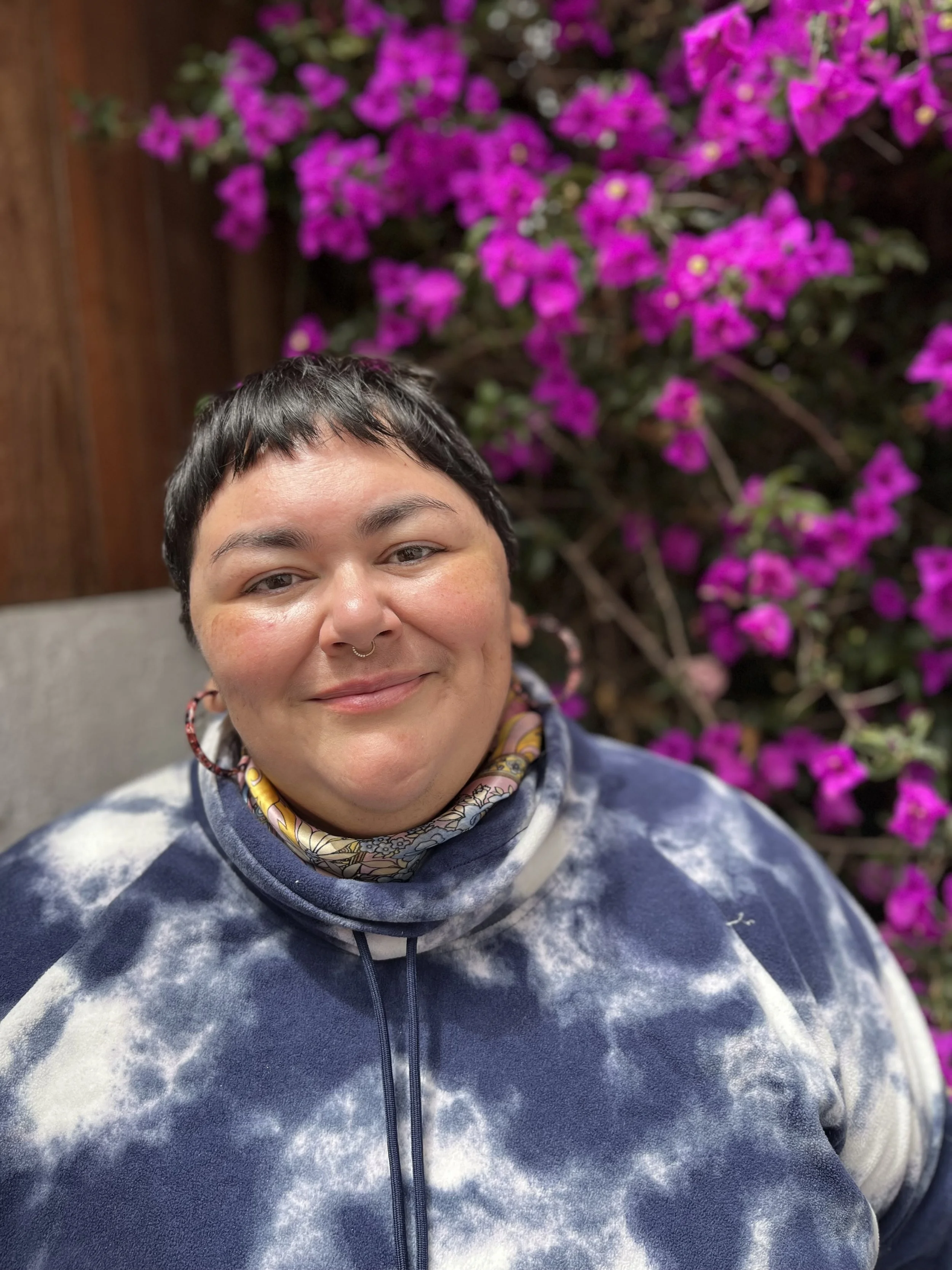 Jasmine Leiva is a multidisciplinary artist and community organizer from Fresno, California, with over 20 years of experience working alongside the community. They draw connections between their home in the San Joaquín Valley and their ancestral home in El Salvador, believing in the power of art to uplift stories. Jasmine is dedicated to building liberation and joy for trans, queer, and disabled individuals. They hold a sociology degree from Fresno State and have a cat named Yuri, along with a growing collection of plants.